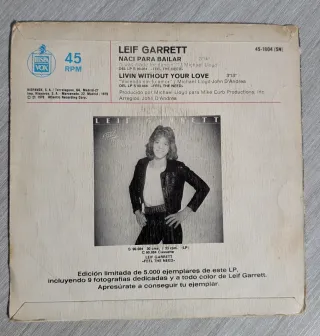 Single de Leif Garrett titulado Naci Para Bailar. - Portada con imagen del artista. - Sello discográfico Scotti Brothers.