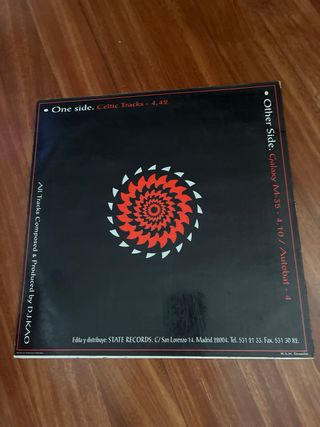 Maxi de Celtic Tracks - Portada negra con diseño de nudos celtas en blanco y rojo. - Título Celtic Tracks en letras rojas.