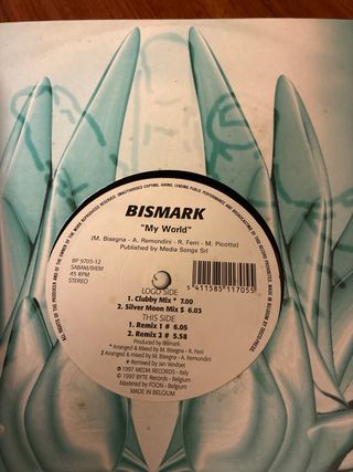 Vinilo de Bismark con el álbum My World. Vinilo muy poco uso - Incluye Cubic, Silver Moon Mix y Remix 1 & 2. - Editado por Byte Progressive. - Fabricado en Bélgica.
