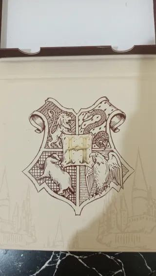 Caja vacía Harry Potter Hogwarts Houses de Sheglam, inspirado en Harry Potter. Incluye un diseño circular con los escudos de las cuatro casas de Hogwarts y el sombrero seleccionador. - Peso neto: 3.7 g x 4.