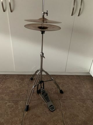 Platillos para batería, parte del set de Hi-Hat. - Material metálico. - Incluye soporte y pedal.