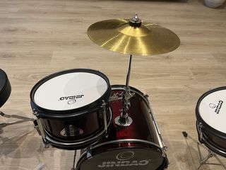 Batería infantil de la marca Jinbao, ideal para los más pequeños que se inician en la música. Se ha usado únicamente el día que se lo han regalado y ya está. - Incluye banqueta. - Bombo, caja y platillo. - Baquetas incluidas. - Pedal bombo