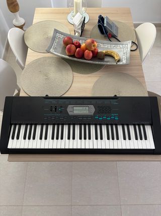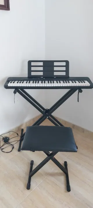 Teclado Casio en buen estado, ideal para iniciarse en la música. Incluye soporte plegable y banqueta. - Teclado electrónico Casio. - Soporte en X ajustable. - Banqueta acolchada. - M GEAR pedal de sostenido Escucho ofertas