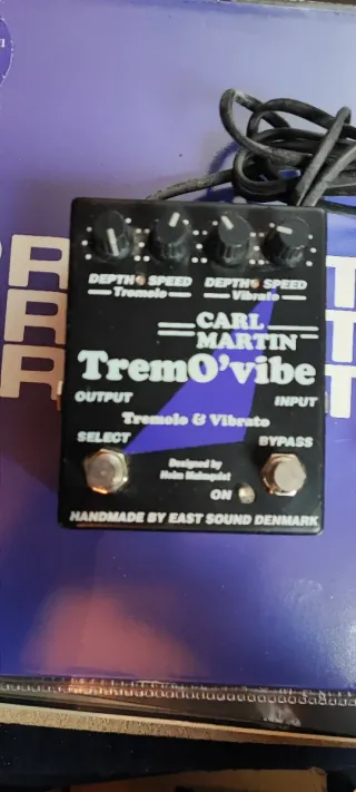Pedal de efectos Carl Martin TremO'vibe para guitarra. - Diseñado por Holm Malmquist. - Fabricado por East Sound Denmark. - Controles de Depth y Speed para Tremolo y Vibrato. - Conmutadores Select y Bypass.