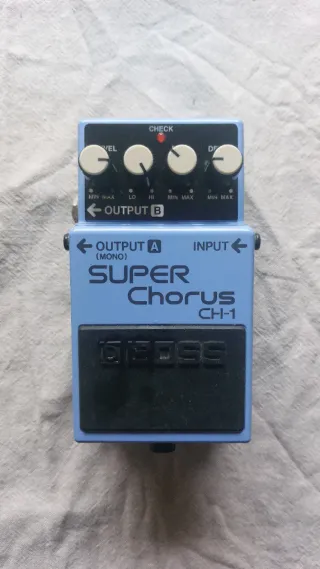 Pedal de efectos BOSS CH-1 Super Chorus. - Color azul característico. - Controles de nivel, EQ, Rate y Depth. - Salidas A (Mono) y B. - Entrada de Input.
