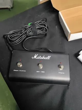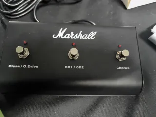 Pedal de efectos Marshall con tres interruptores. - Interruptor 'Clean / O.Drive'. - Interruptor 'OD1 / OD2'. - Interruptor 'Chorus'. - Cable de conexión incluido.