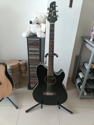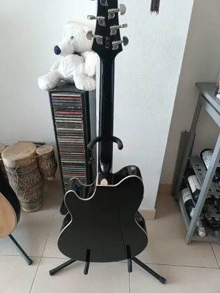 Guitarra electroacústica en color negro. - Cuerpo con acabado brillante. - Mástil de madera. - Seis cuerdas metálicas. - Puente de madera. + Pedal chorus money loop + Batería preamp recargable + Funda guitarra