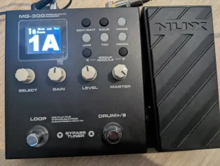 Procesador de guitarra NUX MG-300. - Pantalla LCD. - Controles de edición y navegación. - Botones de función: EDIT/EXIT, SAVE, MODE, JAM, TAP, PEDAL. - Perillas: SELECT, GAIN, LEVEL, MASTER. - Funciones LOOP y DRUM. - Botón BYPASS/TUNER. Depende de la zona lo dejaré en tu casa