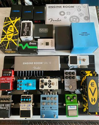 Pedalera de guitarra completa con varios pedales y fuente de alimentación. - Fuente de alimentación Fender ENGINE ROOM LVL 12. - Pedal Boss RC-5 Loop Station. - Pedal MXR Analog Chorus. - Pedal Fulltone OCD. - Pedal Boss MD-200 Modulation. - Pedal Ibanez Tube Screamer TS9. - Pedal Boss RV-6 Reverb. - Pedal Boss DD-8 Digital Delay. - Pedal EVH Wah. - Pedal CHUG. - Afinador Polytune. - Incluye cables de conexión. - Incluye forro de transporte Precio total en tienda 2049€, lo remato a 1500€ Todo NUEVO 10/10.. Solo venta en persona.