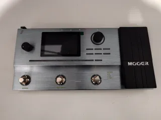 Pedalera multiefectos MOOER GE200 para guitarra eléctrica. Su diseño es compacto y robusto, con una carcasa metálica en color grisáceo. La Mooer GE200 es una pedalera multiefectos compacta para guitarra eléctrica. Ofrece 55 modelos de amplificadores, 26 simulaciones de cabinas y soporte para respuestas de impulso (IR). Incluye 70 efectos, looper de 52 segundos, caja de ritmos, pedal de expresión y pantalla a color de 3.5". Permite hasta 200 presets, conexión USB para grabación y edición, entrada auxiliar, salida de auriculares y tamaño portátil. INCLUYE BOLSA DE TRANSPORTE. Solo usado en casa 2 veces. Nunca en directo.