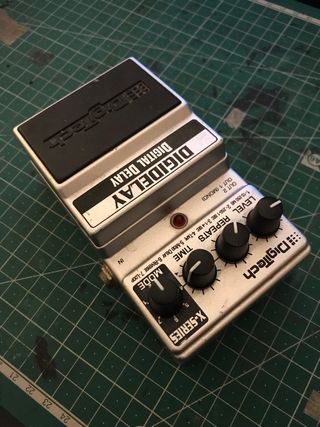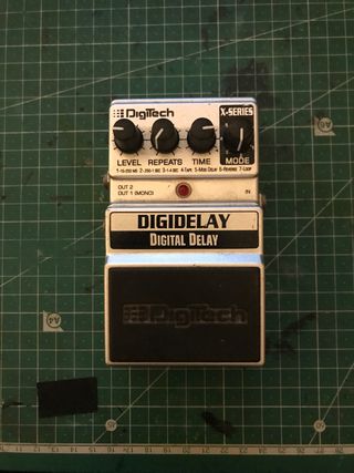 Pedal de efectos para guitarra Digitech Digidelay. - Modelo X-Series. - Controles de Level, Repeats y Time. - Selector de modo con 7 opciones: 1-10-250 MS, 2-250-1 SEC, 3-1-4 SEC, 4-TAPE, 5-MOD DELAY, 6-REVERSE, 7-LOOP. - Salidas Out 1 (Mono) y Out 2. - Indicador LED.