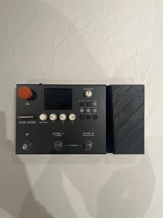 Pedalera multiefectos Nux MG-400 para guitarra eléctrica. Compacta y versátil. - Pantalla digital. - Controles de master y selección. - Botones de control 1 (Loop) y control 2 (Drum). - Pedal de expresión NUX integrado.