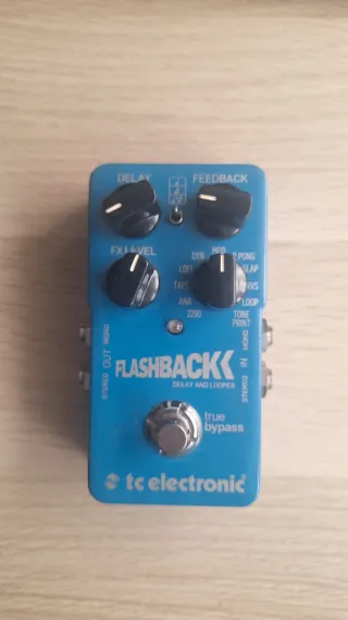 Pedal de efectos TC Electronic Flashback para guitarra. Este pedal combina funciones de delay y looper. Funciona perfecto y es un genial pedal de delay de sobras conocido. Lo vendo con pena porque me paso a digital - Color azul. - Controles de Delay, Feedback y FX Level - Múltiples modos de delay seleccionables (Dyn, Mod, Ping Pong, Slap, Tape, Reverse, Analog, 2290, Tone Print). - True bypass.