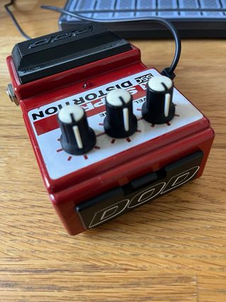 Pedal de distorsión DOD FX-Super Distortion en buen estado. - Pedal de guitarra DOD. - Modelo FX-Super Distortion. - Tres controles: Gain, Tone y Level. - Incluye cable de alimentación.