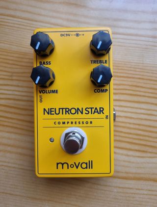 El Movall Neutron Star Compressor comprime la señal de guitarra manteniendo su dinámica y añadiendo sustain. Ofrece ecualización de dos bandas (graves/agudos), controles de volumen y compresión, y sistema True Bypass para preservar el tono original. Su diseño compacto y robusto en aluminio lo hace ideal para pedaleras. Funciona con fuente de alimentación estándar de 9V DC (polaridad negativa al centro).