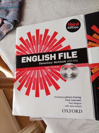 Libros de inglés english file. Poco escrito, y con lápiz. Fácil de borrar. Solo tiene las primeras páginas escritas. La portada del blanco sea separado.