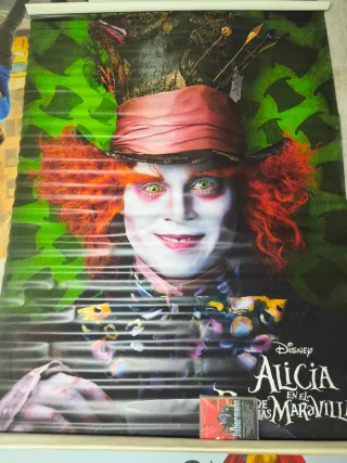 Cartel de vinilo de la película Alicia en el País de las Maravillas de 2010 de Disney con Jhonny Deep - 145cm ancho x 240cm alto - Material: Vinilo. - Año: 2010.