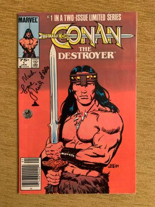 Cómic vintage de 1985 de Conan el Destructor basado en la película del mismo título, firmado por la actriz Olivia D'Abo, una de las protagonistas de la película. Incluye certificado de autenticidad de la firma expedido por Wizard World.
