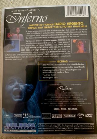 Edición DVD de la reputada distribuidora americana Blue Underground de esta celebrada película de Dario Argento (segunda parte de su conocida trilogía de las "tres madres". Audio en inglés e italiano. Subtítulos en inglés y francés. Como nueva. Vista una sola vez. De colección personal. No envío a Canarias, Ceuta, y Melilla. Compra mínima 6€.