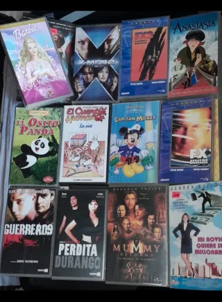 Colección de cintas VHS de películas variadas. - Barbie: El Cisne - X-Men 2 - Anastasia - FX2: Efectos Mortales - El Osito Panda - El Cuerpo Humano: La Piel - Capitán Mickey - Guerreros - Perdita Durango - The Mummy Returns