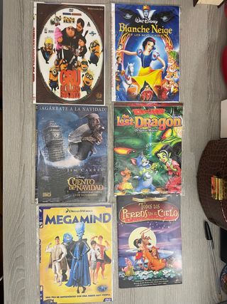 Escríbeme cuales quieres y negociamos precio Películas en DVD: • Toy Story 3 (Vendida) • Episodio 1 Dragon ball • La bella y la Bestia 2 • Up: una aventura con altura (Vendida) • Imagine that • Tom y Jerry: the lost Dragon • Blanca Nieves y los 7 enanitos • GRU mi villano favorito (Vendida) • Cuento de navidad • Megamind (Vendida) • Todos los perros van al cielo • DVD 4 Mortadelo y Filemón • Barbie equipo de gimnasia • Thomas y sus amigos • El libro de la selva 2 • El planeta del tesoro (vendida) • El maravilloso mundo de los animales: Los tigres • Suleiman Zanfari: Born to race • Suleiman Zanfari: Born for racing