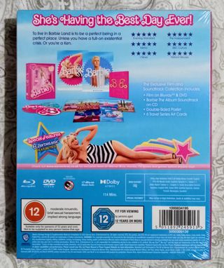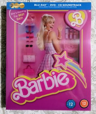 Barbie. Edición coleccionista no editada en España. Incluye: - película en bluray (con castellano). - película en dvd (con castellano). - cd con la banda sonora. - póster de doble cara. - 6 postales. NUEVO Y PRECINTADO.