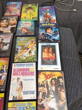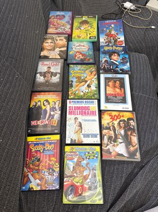 Lote de 14 DVDs de películas variadas. - Barbie - Ben 10 - Arthur Navidad - Harry Potter - Grease - Sirenia - George de la Jungla - Hansel y Gretel - RocknRolla - Slumdog Millionaire - Casi 300 - Clerks II - Un Cachorro llamado Scooby-Doo - Scooby-Doo y los Monstruos - Nunca tantos hicieron tan poco 1€ unidad. La pelicula de harry potter le falta un disco No se admiten devoluciones