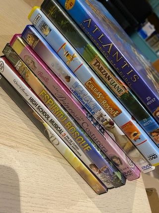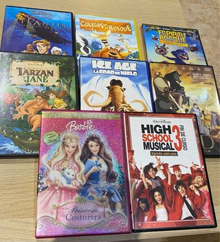 Colección de nueve películas en DVD, ideal para toda la familia. - Atlantis: El Imperio Perdido - Colegas en el Bosque - El Espíritu del Bosque - Tarzán y Jane - Ice Age: La Edad de Hielo - El Cid (2dvd) Goya 2004 - Barbie: La Princesa y la Costurera - High School Musical 3: Fin de Curso (Edición Ampliada)