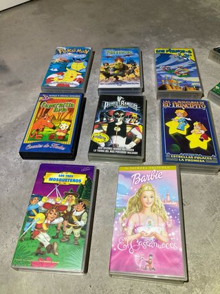 Colección de cintas VHS de películas animadas clásicas para toda la familia. - Pokémon - Shrek - Los Pitufos 6 - Caperucita Roja - Power Rangers: La Película - Las Aventuras de El Principito - Los Tres Mosqueteros - Barbie: El Cascanueces