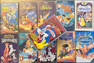 Lote 19 Películas Disney en VHS todo el lote 45 euros, 1 pelicula concreta por 5 euros. Bambi. Cenicienta. Robin Hood. Peter Pan. Hércules. 101 dalmatas. Los Rescatadores. Mulán. Pinocho. Tod y Toby. Aladin . El libro de la selva. Blanca nieves. El jorobado de notredame. La bella y la bestia. Los aristo gatos. Rey leon. Tarzan La dama y el vagabundo...