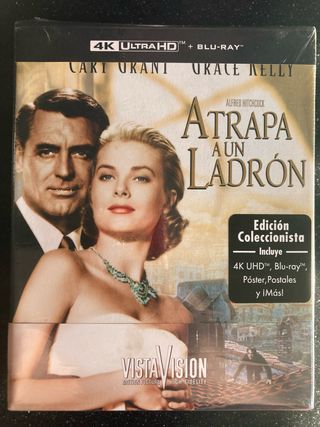 Edición coleccionista, incluye póster, postales y contenido extra. Película protagonizada por Cary Grant y Grace Kelly, dirigida por Alfred Hitchcock. Nueva, sin abrir, ideal para regalo o colección. Difícil de conseguir actualmente. Edición española con audio y subtítulos en castellano, inglés, alemán, francés, italiano y japonés, perfecta para practicar idiomas. Se puede cambiar por otra película que me interese.