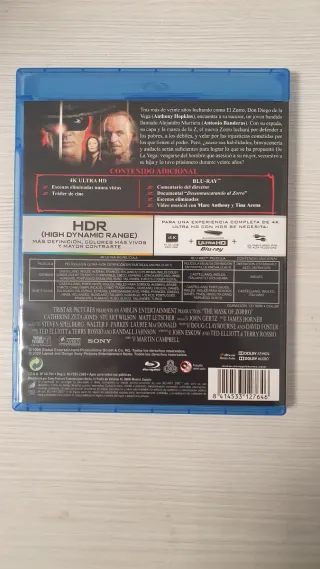 Película La Máscara del Zorro en formato solo Blu-ray. - Incluye Antonio Banderas y Anthony Hopkins. - Audio en inglés y español.