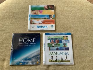 Pack de tres películas en formato Blu-ray. - Home de Yann Arthus - Bertrand - Mañana de Cyril Dion y Mélanie Laurent contenidos adicionales 46 minutos - Bebés Se envia con sobres de polipropileno con cierre adhesivo, por falta de espacio + de 3.000 titulos. Se envia con cuidado, embalaje.
