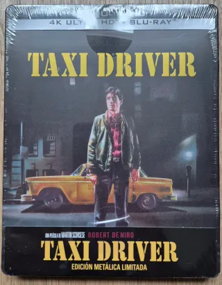 NUEVA - PRECINTADA DESCATALOGADA Edición metálica limitada de la película Taxi Driver en formato 4K UHD y Blu-ray. - Incluye disco 4K UHD. - Incluye disco Blu-ray. - Edición coleccionista.