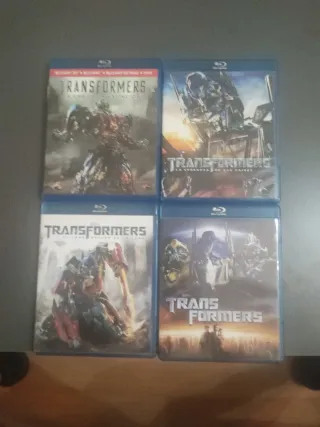 Conjunto de 4 películas de la saga Transformers en formato Blu-ray. - Incluye las películas: •Transformers Blu-ray •El lado oscuro de la luna Blu-ray •La venganza de los caídos Blu-ray •La era de la extinción 3D, Blu-ray, Blu-ray extras y DVD - Idiomas disponibles en inglés y español.