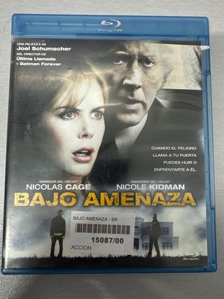 Película Bajo Amenaza en formato Blu-ray. - Dirigida por Joel Schumacher. - Protagonizada por Nicolas Cage y Nicole Kidman. - Género: Acción, Suspense, Thriller.