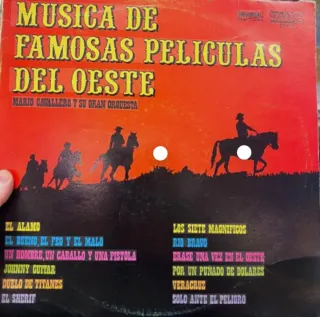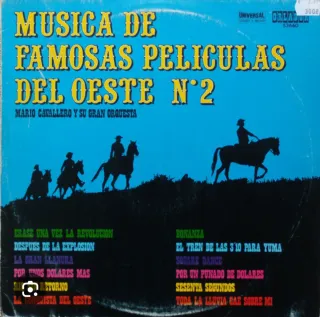 Pareja de vinilos con música de películas del oeste. - Música de Famosas Películas del Oeste por Mario Cavallero y su Gran Orquesta. - Incluye temas como El Álamo, Río Bravo y Johnny Guitar. - Ideal para coleccionistas y amantes del género western. Más información por mensaje. Hago envíos
