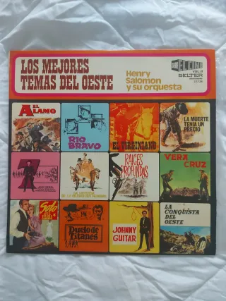 Disco LP de vinilo con una selección de Los Mejores Temas del Oeste interpretados por Henry Salomon y su orquesta. - Incluye temas de películas como El Alamo, Rio Bravo, El Virginiano, La Muerte Tenía un Precio, Los Siete Magníficos, Solo, Duelo de Titanes, Johnny Guitar, La Leyenda de la Ciudad sin Nombre, Raíces Profundas, Vera Cruz y La Conquista del Oeste. - Serie El Cine Vol. II. - Sello Belter. - Referencia 22.738.