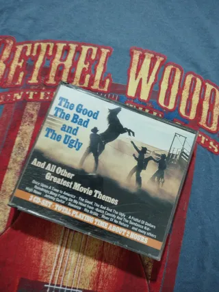 Colección de temas de películas clásicas del Western incluyendo The Good, The Bad and The Ugly, Los siete Magníficos.. CD dedicado a Ennio Morricone - Incluye Once Upon A Time in America, A Fistful Of Dollars, Butch Cassidy And The Sundance Kid, Johnny Guitar, Bonanza, Rio Bravo, River Of No Return, Degüello Gunfight at the OK Corral, the lost Valley, a fistful of dollars, Orient Express... - Formato: 3 CD-SET 1988 - Tiempo total de reproducción: aproximadamente 2 horas.