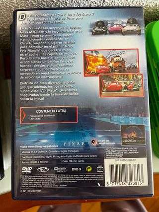 Película Cars 2 de Disney Pixar en formato DVD. - Acción y aventura. - Animación. - Película familiar.