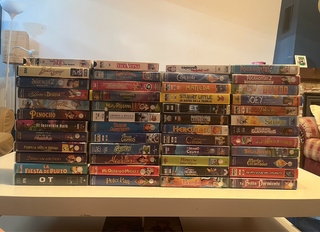 Colección de 42 cintas VHS de películas infantiles Disney y otras animaciones clásicas en español. Están en buen estado, algunas con señales normales de uso. - Incluye títulos como: 'El Jorobado de Notre Dame', 'La Cenicienta', 'Pocahontas', 'El Rey León', 'Tarzán', 'Aladino', 'Los Rescatadores', 'Alicia en el País de las Maravillas', entre otras. - Perfecto para nostálgicos también de TINTIN o para disfrutar en familia. ACEPTO TODO TIPO DE PROPUESTAS.