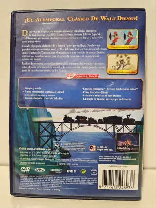 DVD de Dumbo de Walt Disney, en español (El auténtico antiguo) - Edición Los Clásicos Disney. - Película animada. -Pertenece a mi colección privada de peliculas. Caja gruesa (No Slim) -(posibilidad de envío por correo ordinario o certificado) -El envío irá bien protegido en sobre acolchado. - ENTREGA EN MANO -mue-sal