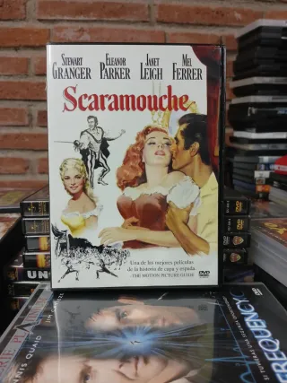 Película clásica Scaramouche en formato DVD. - Protagonizada por Stewart Granger, Eleanor Parker y Janet Leigh. - Incluye audio en inglés y español. - Género: Acción, Aventura, Drama, Romance. DVD IMPECABLE SINNUSO.