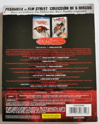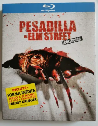 Película de terror Pesadilla en Elm Street en formato Blu-ray.Incluye las 7 peliculas en bluray mas dvd de extras. También incluye comic. - Incluye contenido inédito: Miedo a sí mismo: La vida y crímenes de Freddy Krueger. En perfecto estado, como nuevo. Entrega en mano.