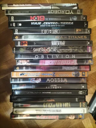 Colección películas en formato DVD, con una variedad de géneros para todos los gustos. Se venden por unidad - La Huella - La Búsqueda - Cube - El Agente Secreto - Estambul - El Planeta de los Simios - Muere Otro Día - Alien: El Octavo Pasajero - Take Shelter - Jurassic World - El Mensajero del Miedo - 007 - Jungla de Cristal - Collateral - Percy Jackson y el Ladrón del Rayo - Trilogía de La Momia - Tetralogía Indiana Jones - Pearl Harbor - Desafío total - Pack Alien/Depredador...