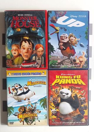 Lote de 4 clásicos de las películas de animación en formato DVD. Dreamworks y Pixar. - Monster House - Up - Los Pingüinos de Madagascar: La Misión - Kung Fu Panda ///Tags de búsqueda: película animación digital infantil sony\\\