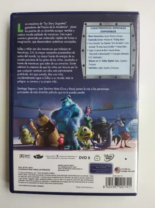 Película de animación Monstruos, S.A. de Disney Pixar. - Edición en español. - Formato DVD.
