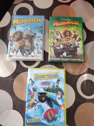 Conjunto de tres películas infantiles en formato DVD. Las tres 12€ cada una 5€ Puedes verlas con más fotos por separado en mi perfil - Madagascar - Madagascar 2 - Locos por el Surf Todas con mucho material extra Colección , coleccionistas , edición limitada , regalos , navidad