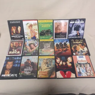películas en DVD, cada una 3 Euros: 300 Residente evil 2 Master and Commander Kill Bill 1 y 2 Soy leyenda El amanecer del planeta de los simios Destino de caballero La isla Divergente Jurassic world Pearl Harbor Fanático cómo dios NO REALIZO ENVIOS