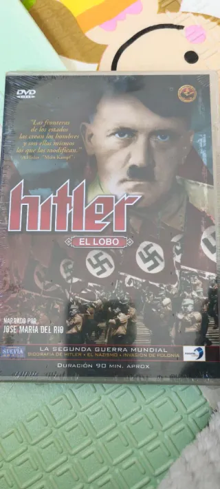 Documental sobre la vida de Adolf Hitler, El Lobo. Precintado ENVIOS CORREOS O SEUR - Las fronteras de los estados las crean los hombres y son ellos mismos los que las modifican. (A. Hitler - Mein Kampf) - Narrado por José María del Río. - Duración aproximada de 90 minutos. - Incluye temas como la biografía de Hitler, el nazismo y la invasión de Polonia.